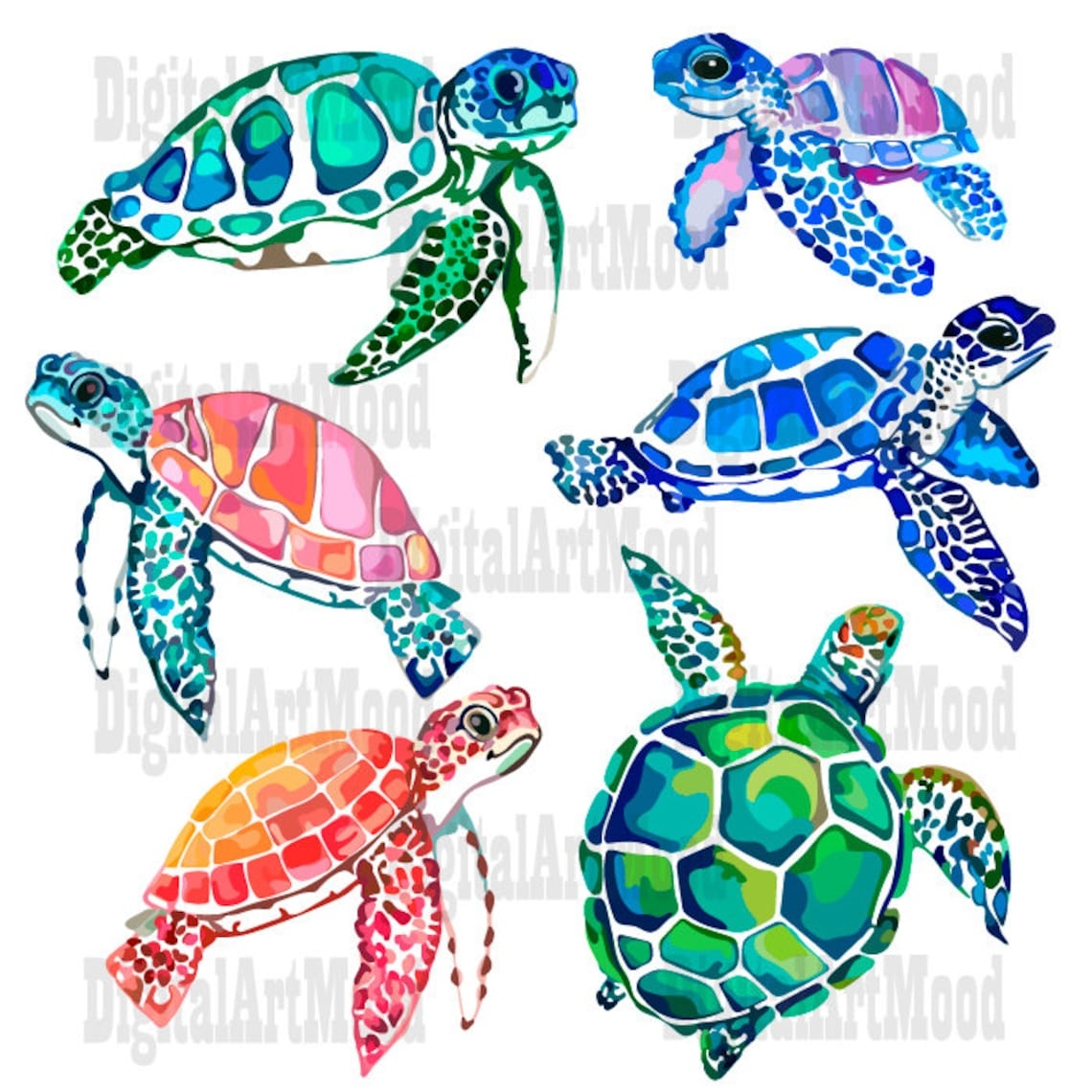 Clipart Sea Turtles Colored Turtles Sea Turtles PNG Etsy